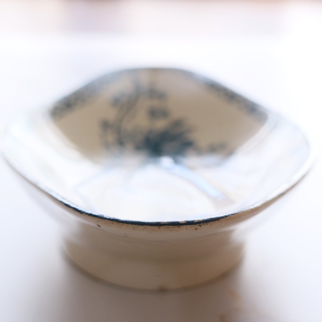 古い品物の特性としまして、窯跡、窯傷、厚さの均等感や歪み、プリントやステンシルの柄に擦れなどのダメージ、全体的な経年の細かな傷などに関し全てを表記しきれない場合もございます。