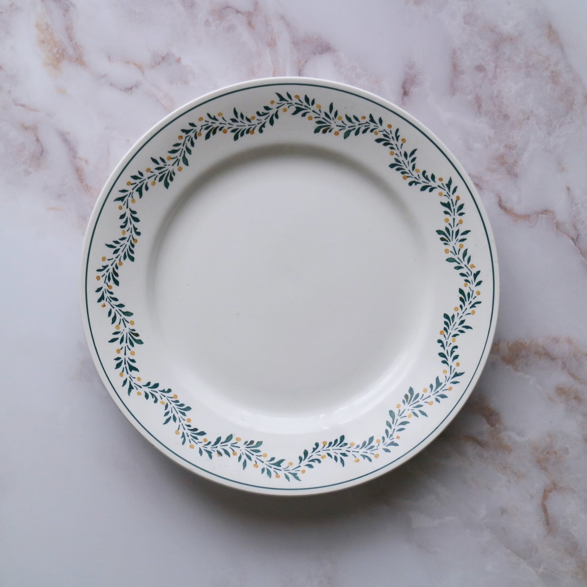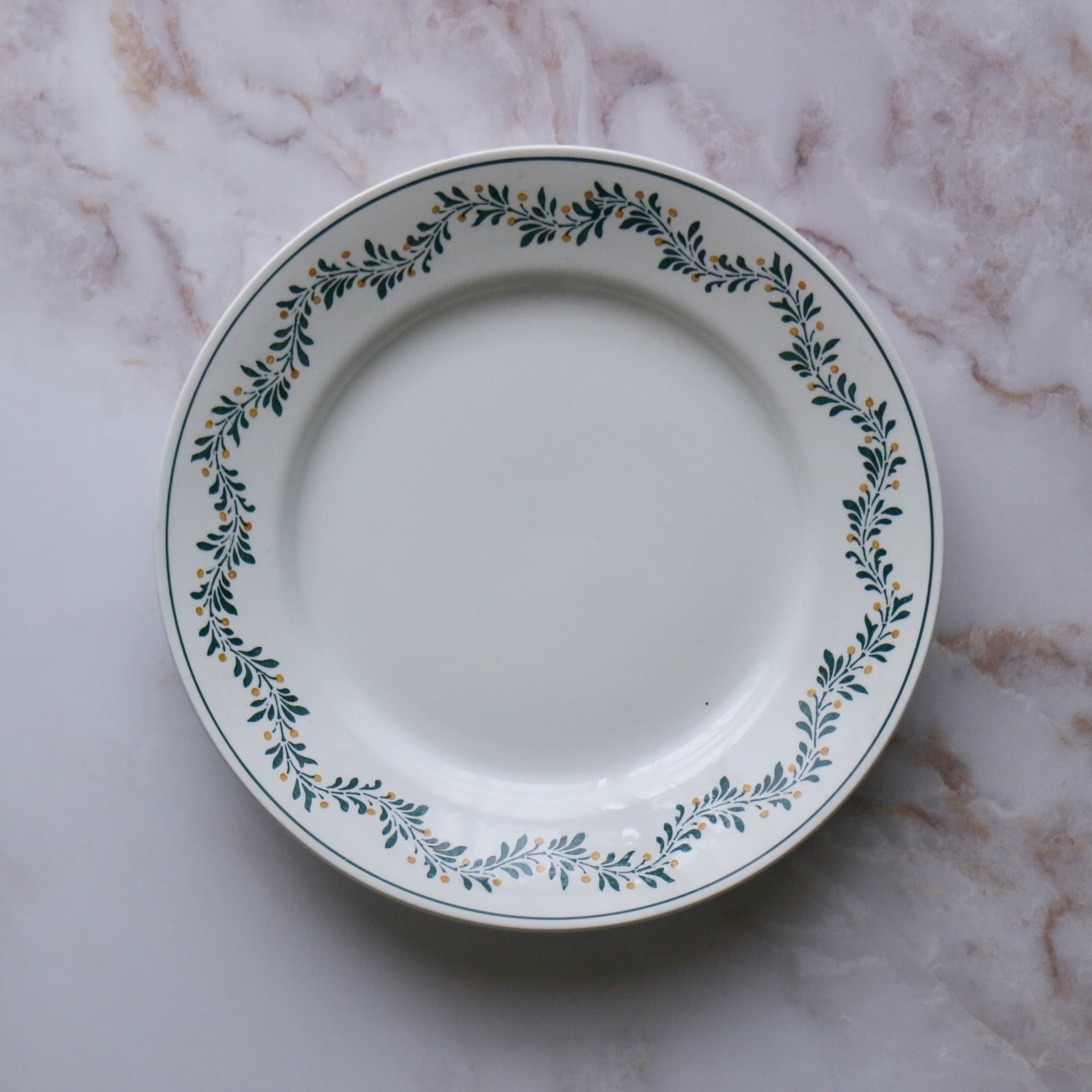 リムに散りばめられた黄色のポンポンが控えめですが可愛らしいプレート
