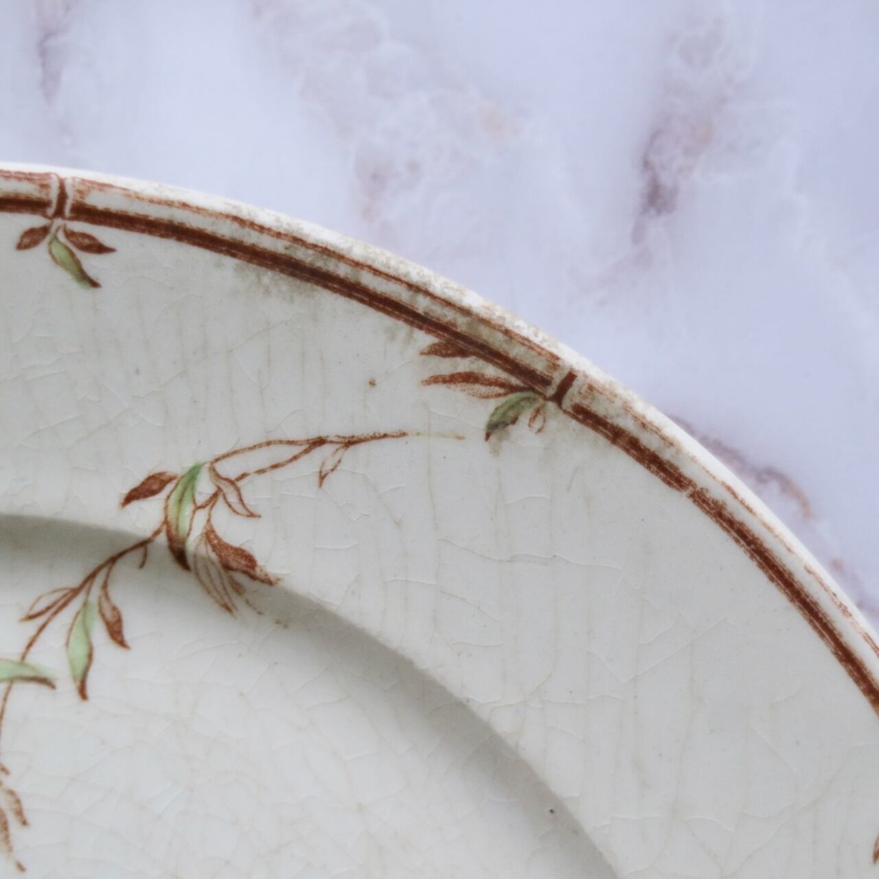 古い品物の特性としまして、窯跡、窯傷、厚さの均等感や歪み、プリントやステンシルの柄に擦れなどのダメージ、全体的な経年の細かな傷などに関し全てを表記しきれない場合もございます。