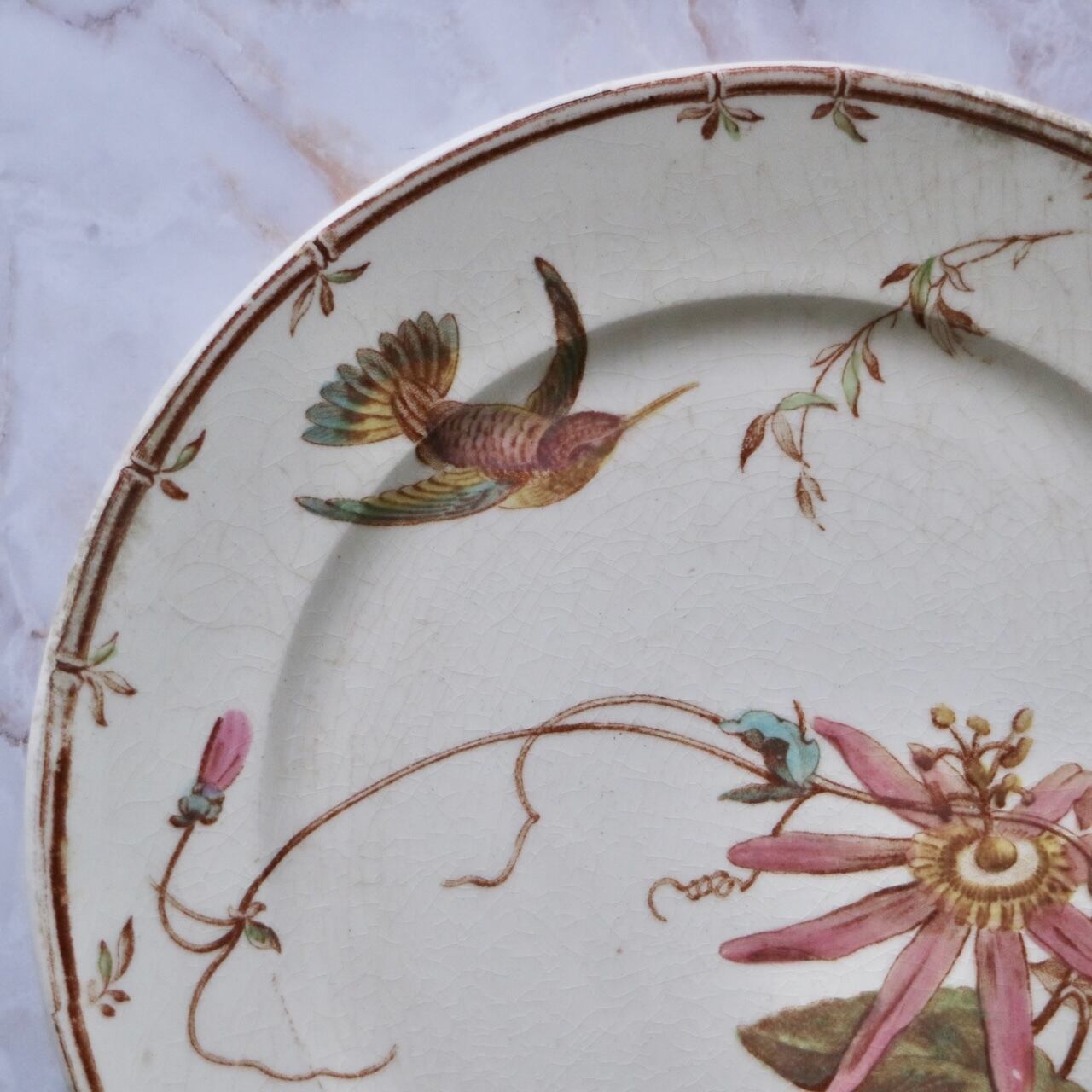 24_72 Gien oiseau-mouche デザート皿 フランスアンティーク